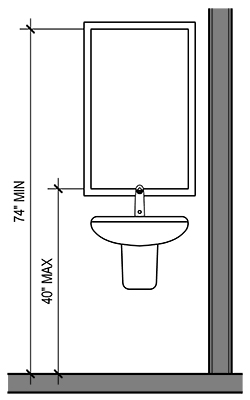 Made of high quality silvered mirror, this simple and functional mirror provides maximum clarity. Spout outlets shall be 36 inches (915 mm) maximum above the finish floor or ground. Although heights may vary, it is important to remember that the higher the bath is, the harder it is to get in an out. This applies to situations in which the mirror is above a piece of furniture under 30 inches tall or when it is the only item on the wall. How high you hang your bathroom mirror depends on a variety of factors: