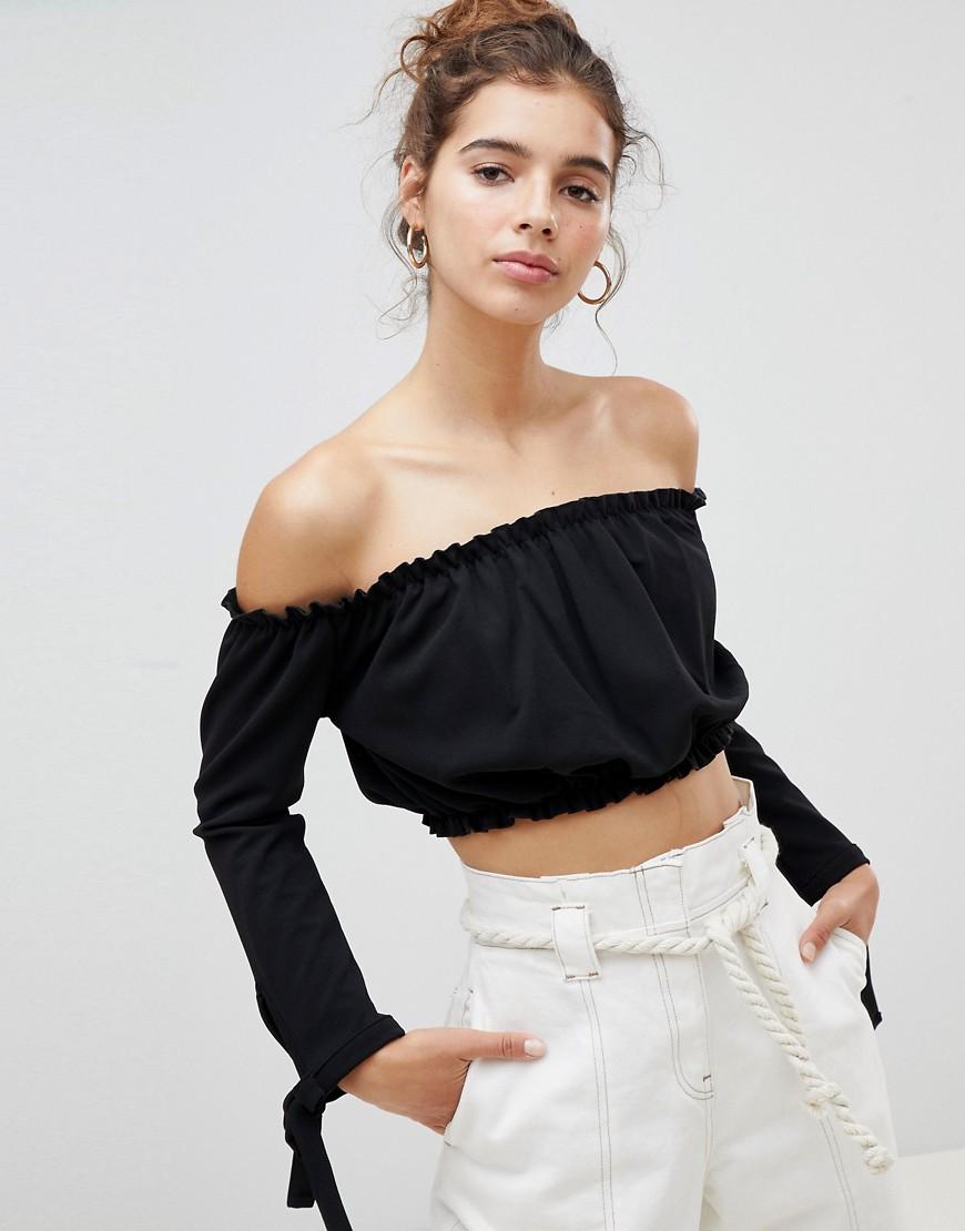 We love black bardot crop tops for throwing on with mom jeans and trainers for a casj vibe black top bar. From bardot crop tops to long sleeve off the shoulder tops, you don't wanna miss our collection of bardot tops for women.